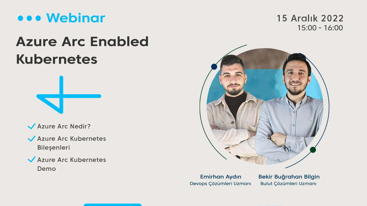 15.12.2022 tarihinde gerçekleştireceğimiz Azure Arc Enabled Kubernetes webinarımıza katılımınızdan memnuniyet duyacağız.